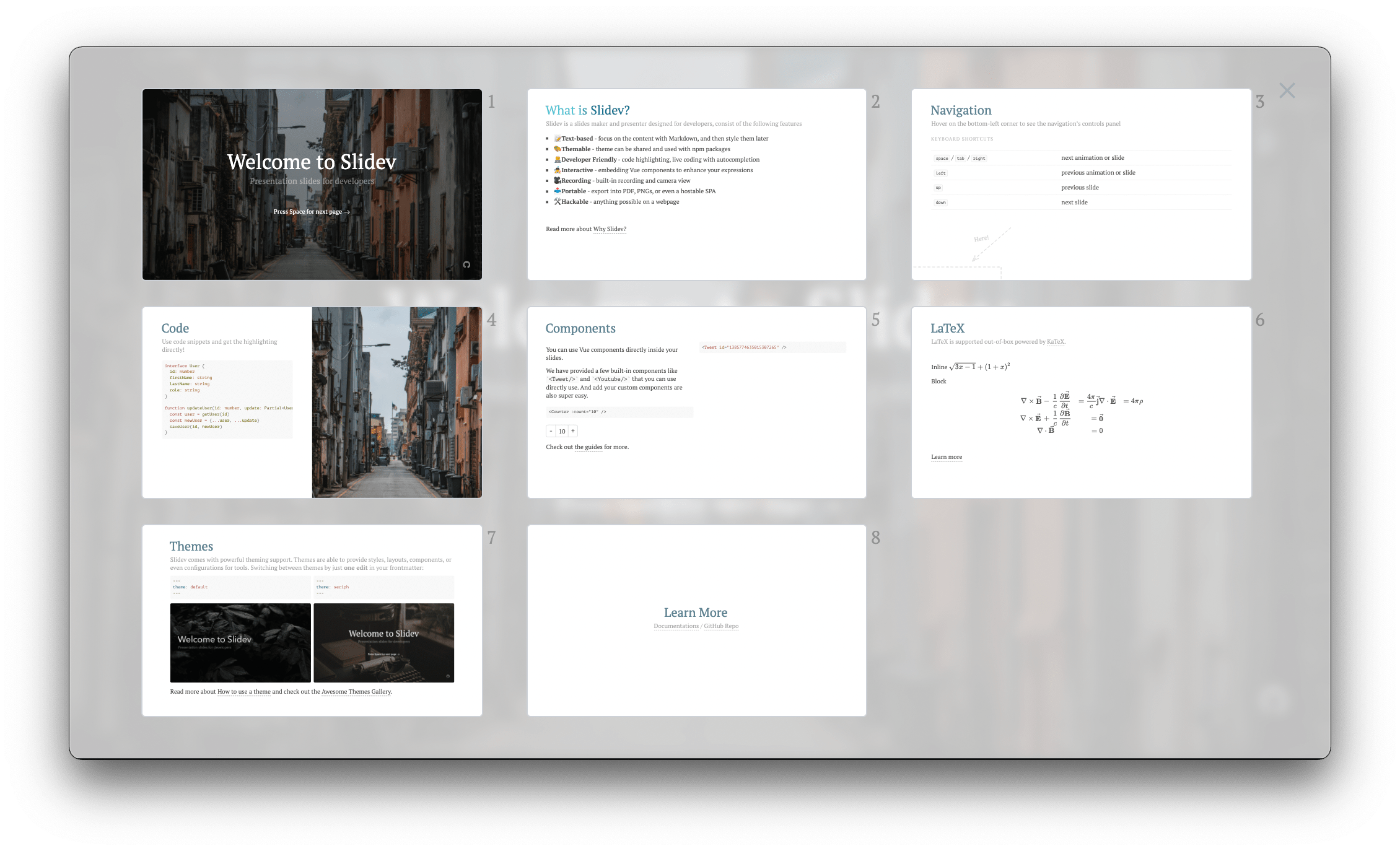 Нажав на o или кликнув на кнопку в панели навигации, вы можете просмотреть свои слайды и без труда переключиться на них